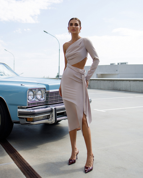 ( Anzahl der Produkte: 22 )Beige asymmetrisches Kleid mit Schleifen + große Größen!!!