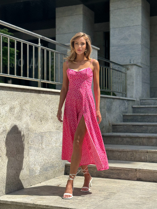 Lekka sukienka w kwiatowy wzór w kolorze różowym